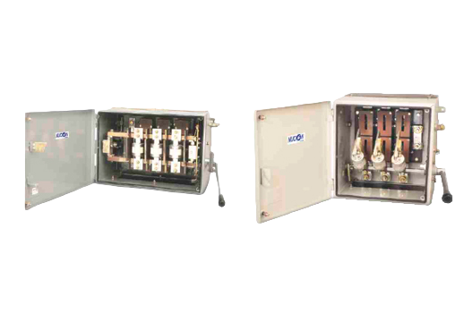 Housed in thick steel sheet fabricated body for 100A to 630 Amps. NUCON fuse switch Units are robust in contruction and sleek in appearance. The extensive tooling done on the parts and rigorous quality control maintained on the switches ensure the very high quality.