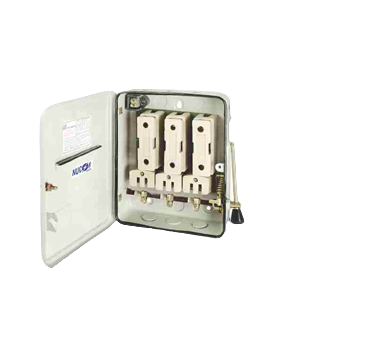The enclosure is made of sheet steel,rust protected, phospatized and powder coated.They are fitted with removable top and bottom end plates provided with knock-outs for busbars/cables entry.front accessible door,fatted with dust-excluding gasket, is interlocked to prevent opening when the switch is 'ON' condition.They are suitable for surface mounting.